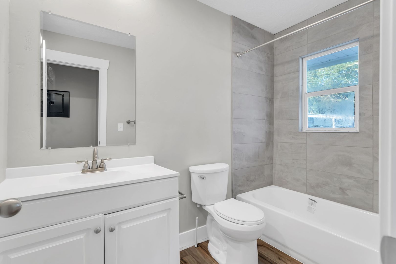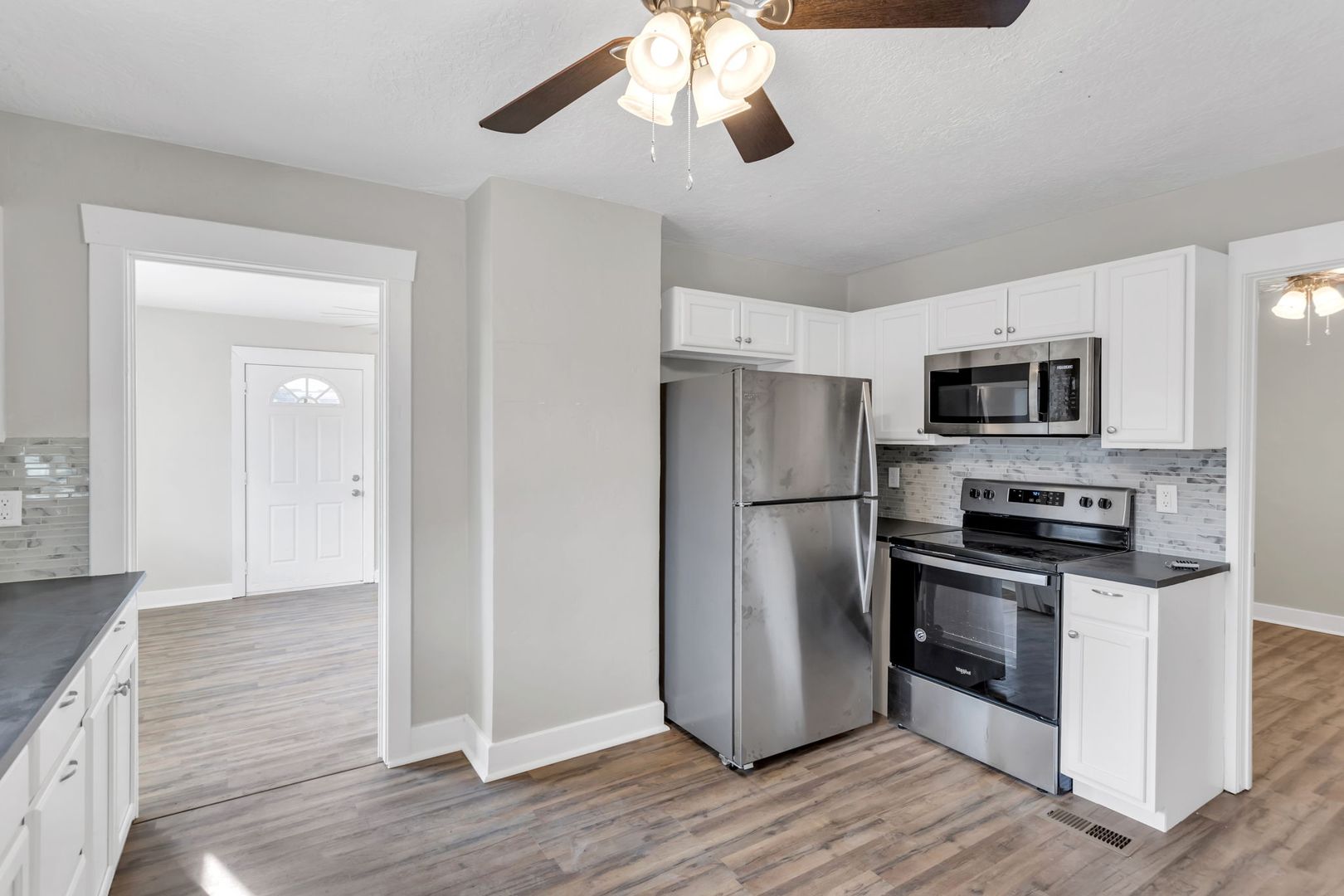 - Laminate flooring throughout.